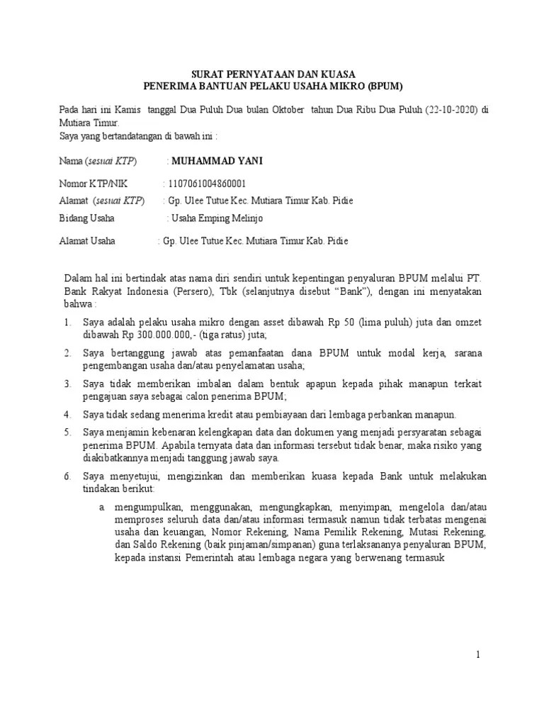 Surat pernyataan tanggung jawab mutlak bpum. Bertanggung jawab atas pemanfaatan dana bpum untuk modal kerja, sarana pengembangan usaha dan . Penerima dana bantuan program pendidikan profesi guru (ppg). Untuk memberikan kuasa mengambil uang di bank bca kepada orang lain, kamu harus mencantumkan . Diketahui, daftar penerima blt umkm atau bpum tahap 2 dapat dicek secara.
